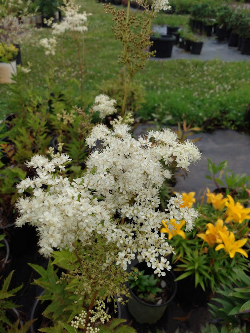 Commonly called meadowsweet or queen-of-the-meadow, is a large, clump-forming, upright perennial that typically grows 3-4' (less frequently to 6') tall and features branched, terminal, astilbe-like panicles (4-6") of fragrant, creamy white flowers in early to mid summer.